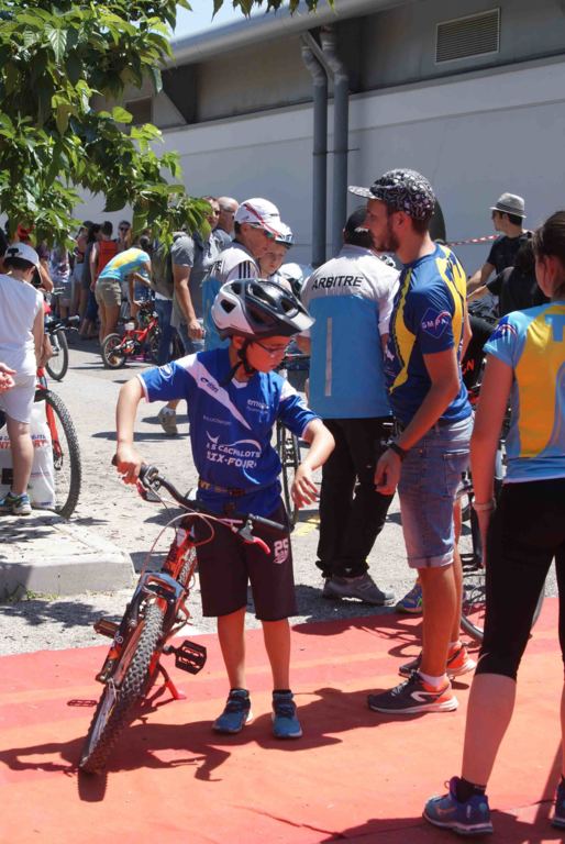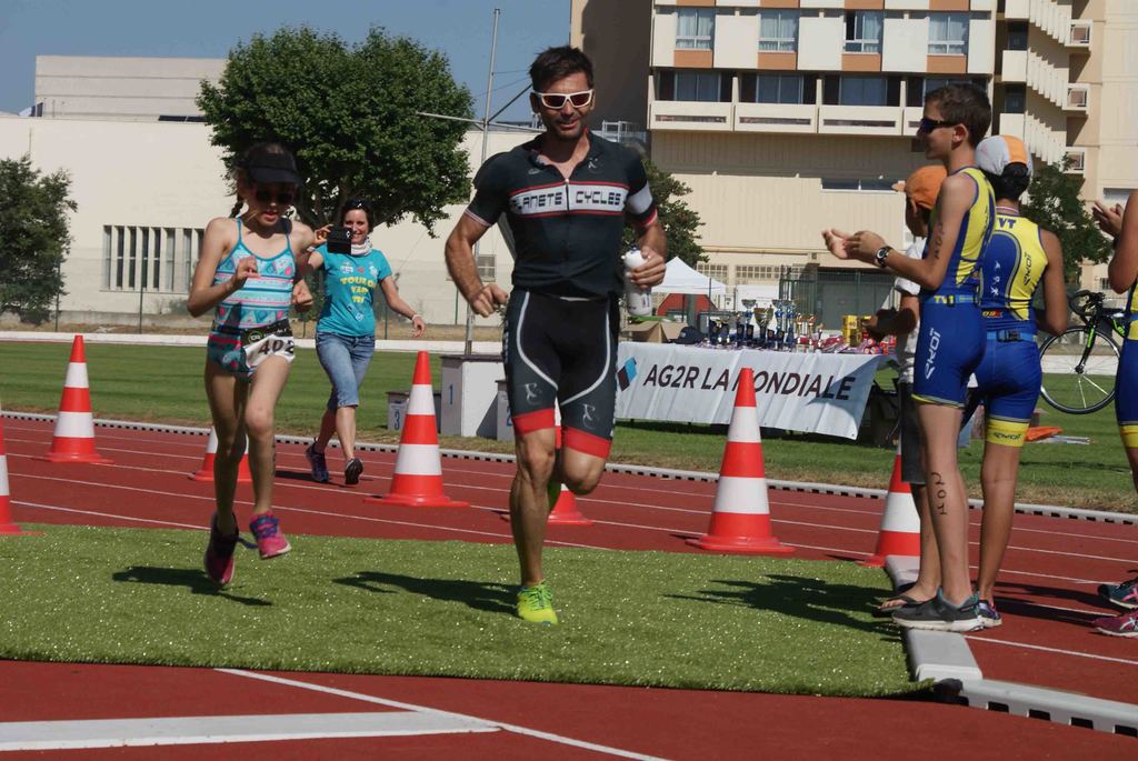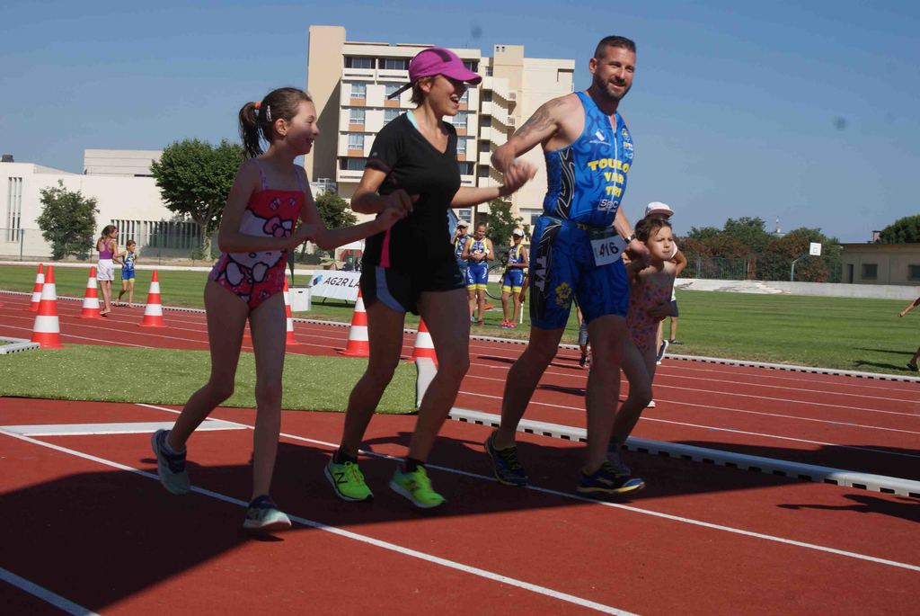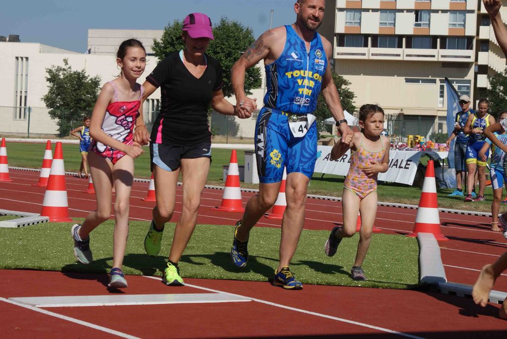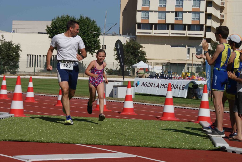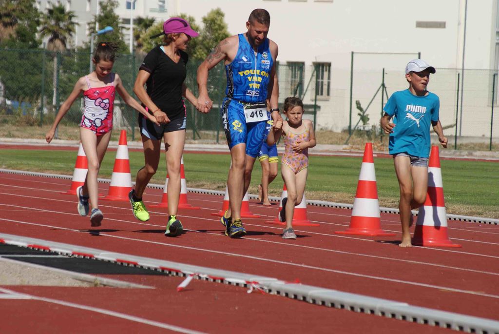 A cela, s’est rajoutée une dernière épreuve, celle des familles. Course non chronométrée, composée de 25 équipes effectuant une distance de catégorie poussin soit 50 m de natation, 1000 m de vélo et 400 m de course à pieds.