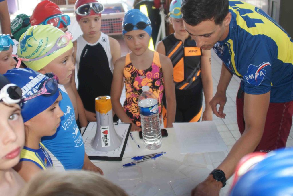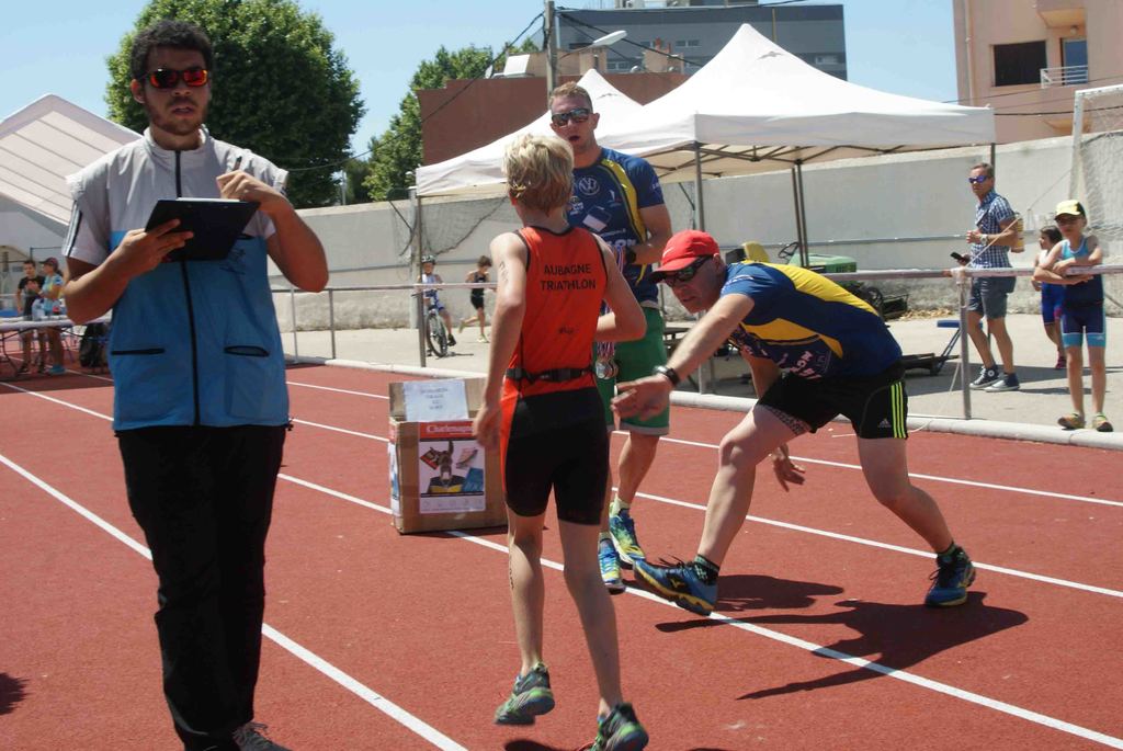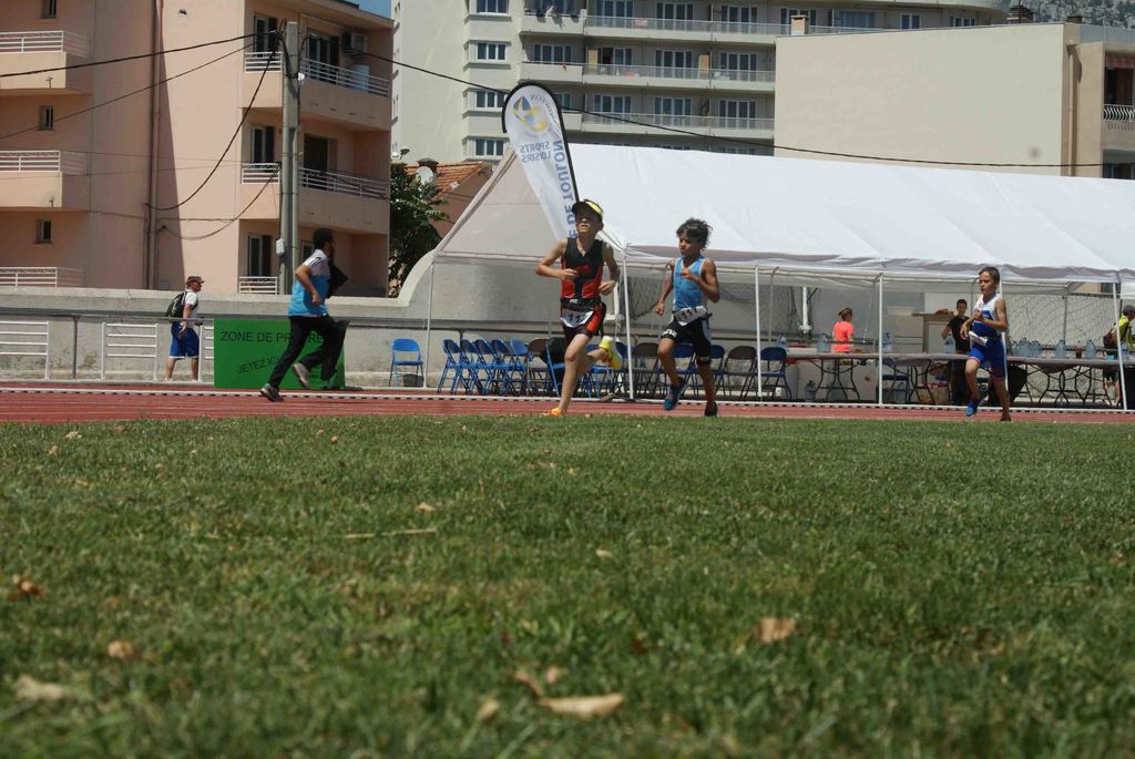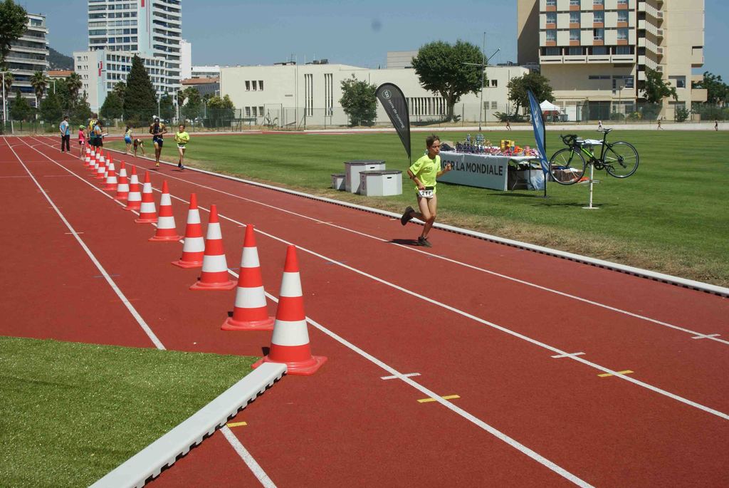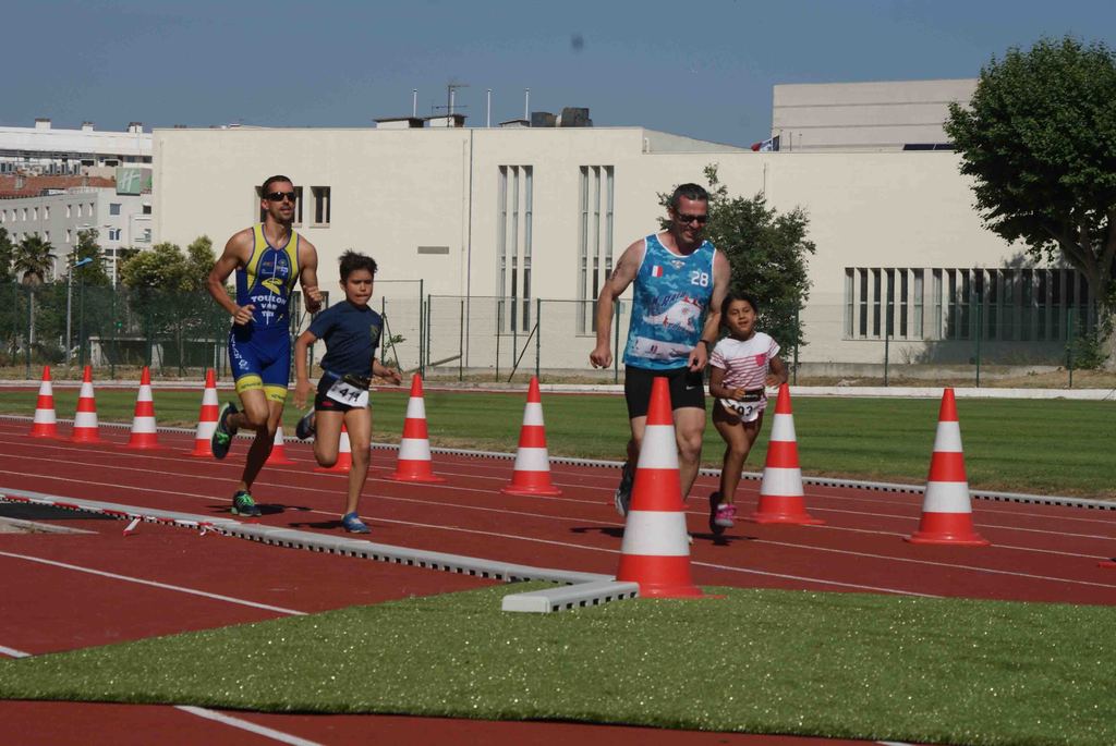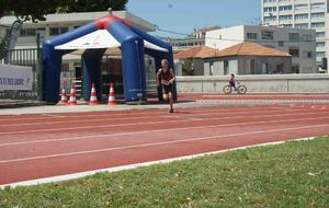 Il s'agissait pour les différentes catégories de parcourir de 50 à 300m de natation dans la piscine de 25m, parcourir en vélo de 1000 à 6000m et finir par une course à pieds de 400 à 1600m sur cette belle piste d'athlétisme du stade Jauréguiberry.