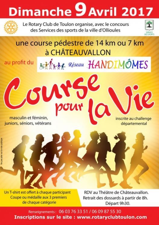 Il y avait également en ce beau week-end ensoleillé, un 14km à pieds sur Ollioules, coté Chateauvallon. La traditionnelle course pour la vie organiser par le Rotary club SBO.